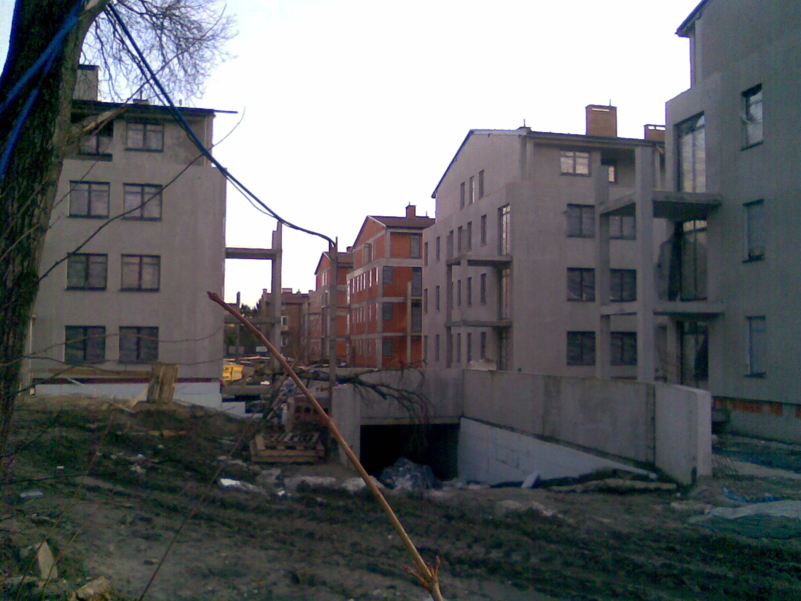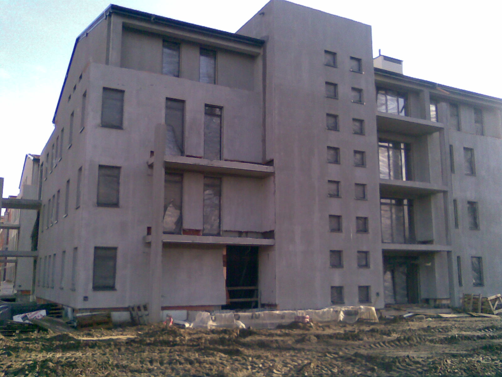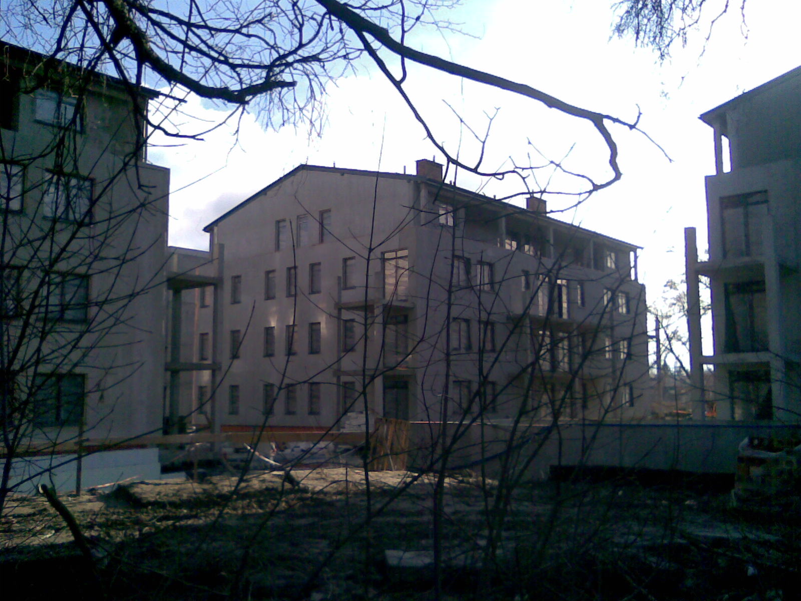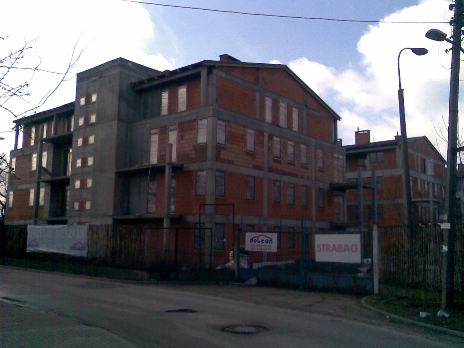 Niedzielna wizyta na osiedlu. Zewnętrzne zmiany są raczej symboliczne, w budynku 1 wstawiono wszystkie okna. Ponadto znikła sterta styropianu z okolic budynków 1 i 2.
